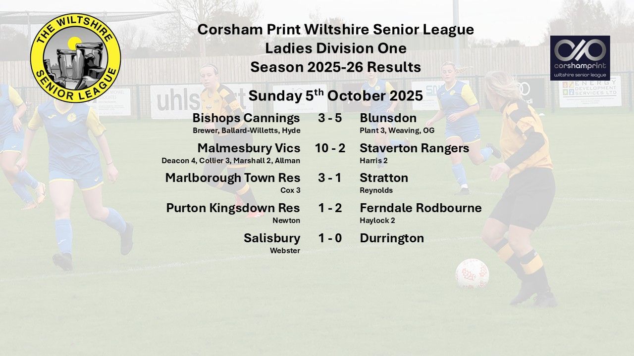 Once again there were no problems with the playing of fixtures in Division One as all five scheduled fixtures were played and there are now new leaders of the division after Bishops Cannings fell to their first defeat of the season. Prior to Sunday Blunsdon were without a win so far this season but an impressive performance at Green Lane saw them return home with all three points following a 5-3 win. Lyndsey Plant led the way scoring a hat-trick with Kaylee Weaving and an own goal completing the scoring for the visitors. In reply for Bishops Cannings, Elsie Brewer scored twice with Korinna Ballard-Willetts getting the other goal. Bishops Cannings slipped to second place on goal difference.