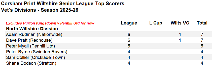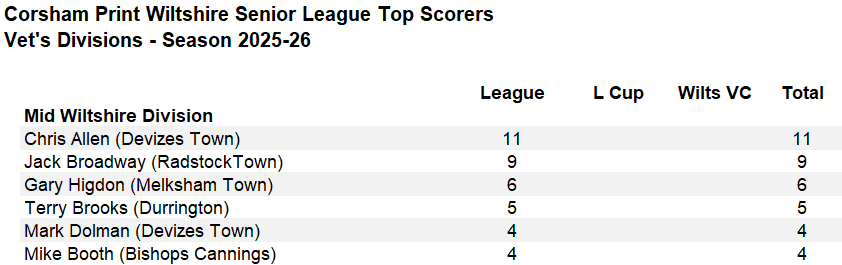 The two games that did get played saw Radstock Town and Devizes Town consolidate their positions at the top end of the table. A hat-trick from Jack Broadway and one from Steve Gilham saw Radstock Town win 4-2 at home against Bishops Cannings, Adam Bewley with both goals for Bishops Cannings. The win for Radstock saw them move up to third place in the table.