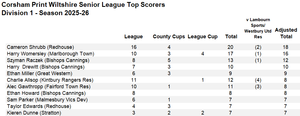 The big game of the day was at Elcot Lane Marlborough where Marlborough Town entertained Kintbury Rangers Reserves who started the day in second place in the table. It would prove to be Marlborough’s afternoon as two goals from Harry Womersley and one apiece for Jake Farrell and Dylan Sartin gave Marlborough Town a comfortable 4-0 home win. With the league table having now been adjusted for the withdrawal of Lambourn, Marlborough Town are now third in the table level on points with the new second place side Malmesbury Vics and four points behind the league leaders with both Marlborough and Malmesbury having played one more game than Fairford Town Reserves. Kintbury Rangers Reserves are now down to fourth place in the adjusted table three points behind Marlborough.
