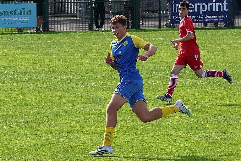Both Swindon Supermarine Development, who sat second in the table at the start of the day, and third placed Larkhall Athletic Development, had tough looking fixtures against Melksham Town Reserves and Pewsey Vale respectively, who were both in the chasing pack just below the top three. Swindon Supermarine Development had edged a tight game against Melksham Town Reserves at the beginning of August by the odd goal in a 3-2 win, one of only three league games that Melksham had lost ahead of Saturday’s second meeting of the season in Swindon and were looking to complete a league double. However, Justin Flower’s young side were to avenge that earlier defeat with an impressive 3-1 win in Swindon on a wet and wild afternoon in the Corsham Print Wiltshire Senior League. The two sides turned around at the break all square at 0-0 but Melksham upped their game after the break scoring three times through Baillie Nicholls, Tom Dowell and Oscar Hall to open up a 3-0 lead. There was to be a late consolation goal for Swindon Supermarine though, the goal coming from the penalty spot, Regan Lach putting the spot kick away to complete the afternoons scoring. That is now three games without a win for Matt Roberts side who have now slipped to third place in the table and having played two more games than the two sides above them.