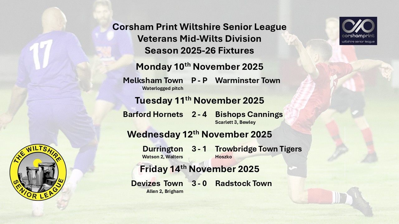 Three of the four scheduled fixtures in the Mid Wiltshire Division went ahead, unfortunately the only game set to be played on grass, the game between Melksham Town and Warminster Town, fell victim of a waterlogged pitch.
