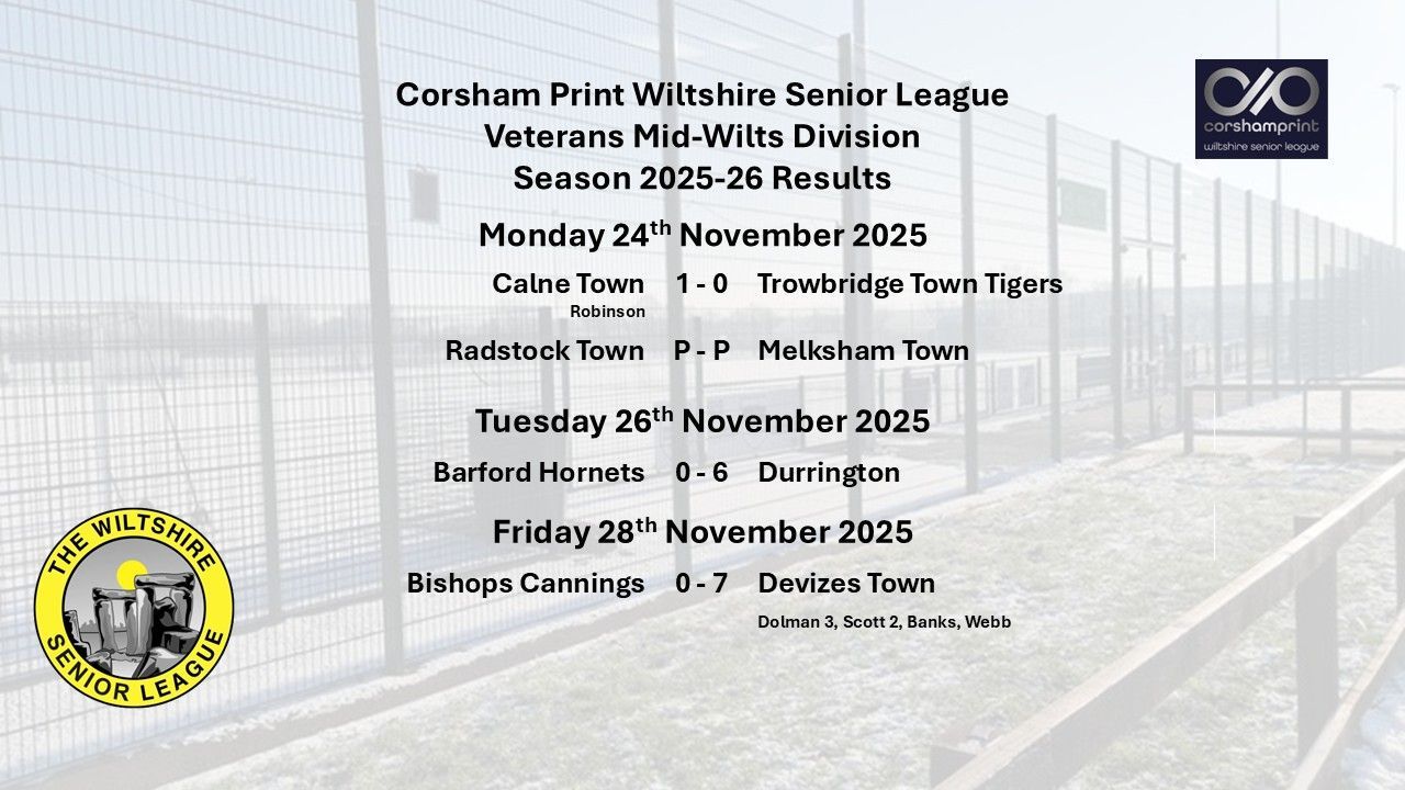 The action in the Mid Wiltshire Division had got underway on Monday night at MOD Lyneham where a second half goal from Chris Robinson was enough to give Calne Town the victory in a tight game against Trowbridge Town Tigers. The win for Calne was their third win of the season and saw them move above both their beaten opponents and Warminster Town into fifth place in the table.