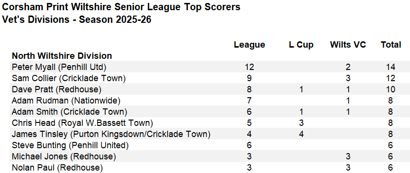 It is pleasing to report that there was a full schedule of games played in the North Wiltshire Veterans’ Division of the Corsham Print Wiltshire Senior League and it remains as tight as ever at the top end of the table with three of the title contenders all dropping points.