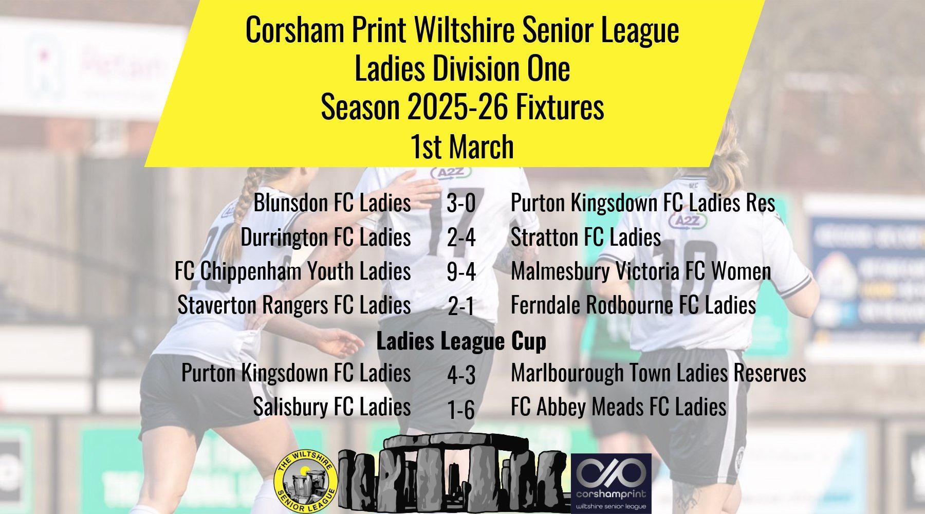 Elsewhere Stratton won 4-2 away at Durrington with Chloe Brown scoring a hat-trick for the visitors, whilst Staverton Rangers won 2-1 at home against Ferndale Rodbourne.