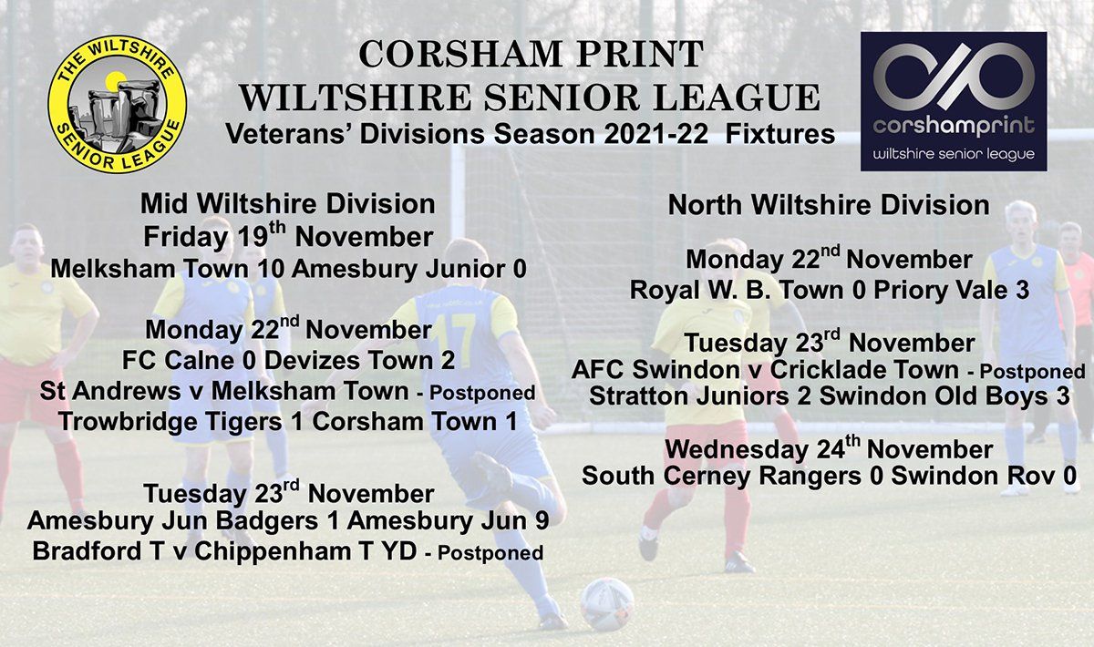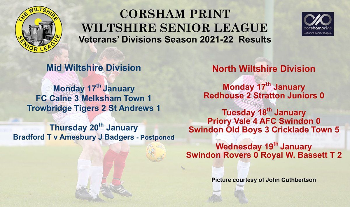 There were just two games played in each of the Veterans’ Divisions of the Corsham Print Wiltshire Senior League at the beginning of the week. There is a further game on Friday night but details of that will be included in next week's round-up.